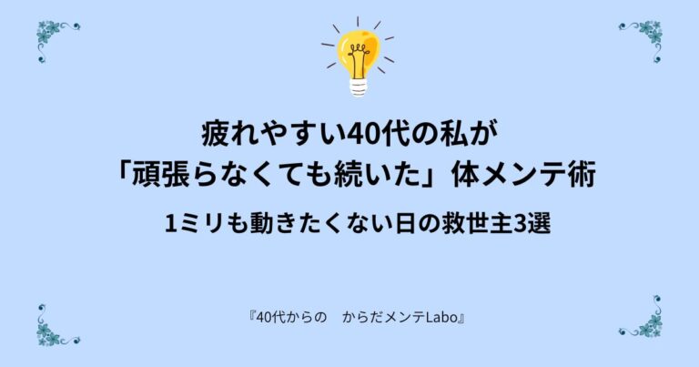 疲れやすい40代の私が「頑張らなくても続いた」体メンテ術|1ミリも動きたくない日の救世主3選